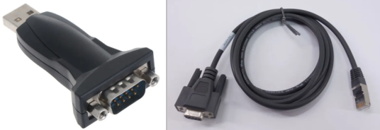 A USB-to-Serial adapter and a PC are required. The following adapter configurations are available: