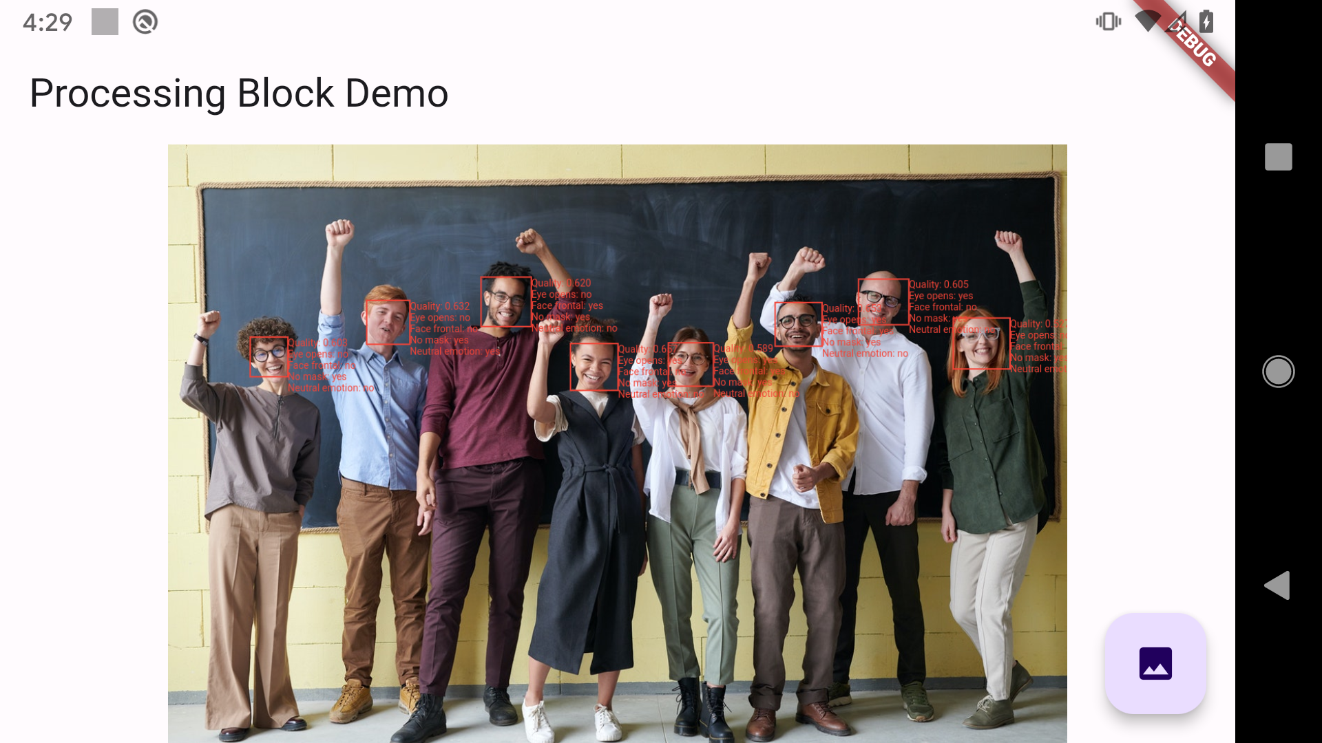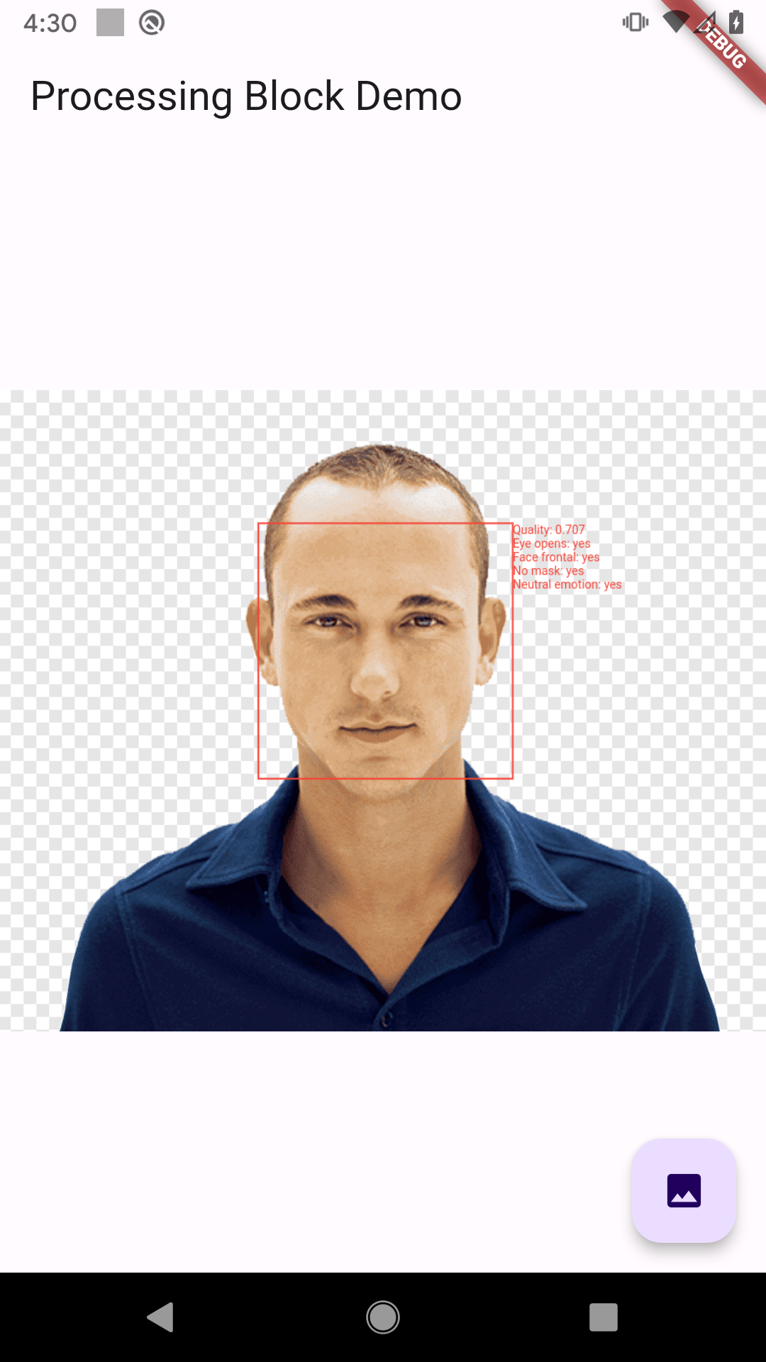 Once an image is selected, the app detects any faces within it and performs a quality assessment for each detected face.